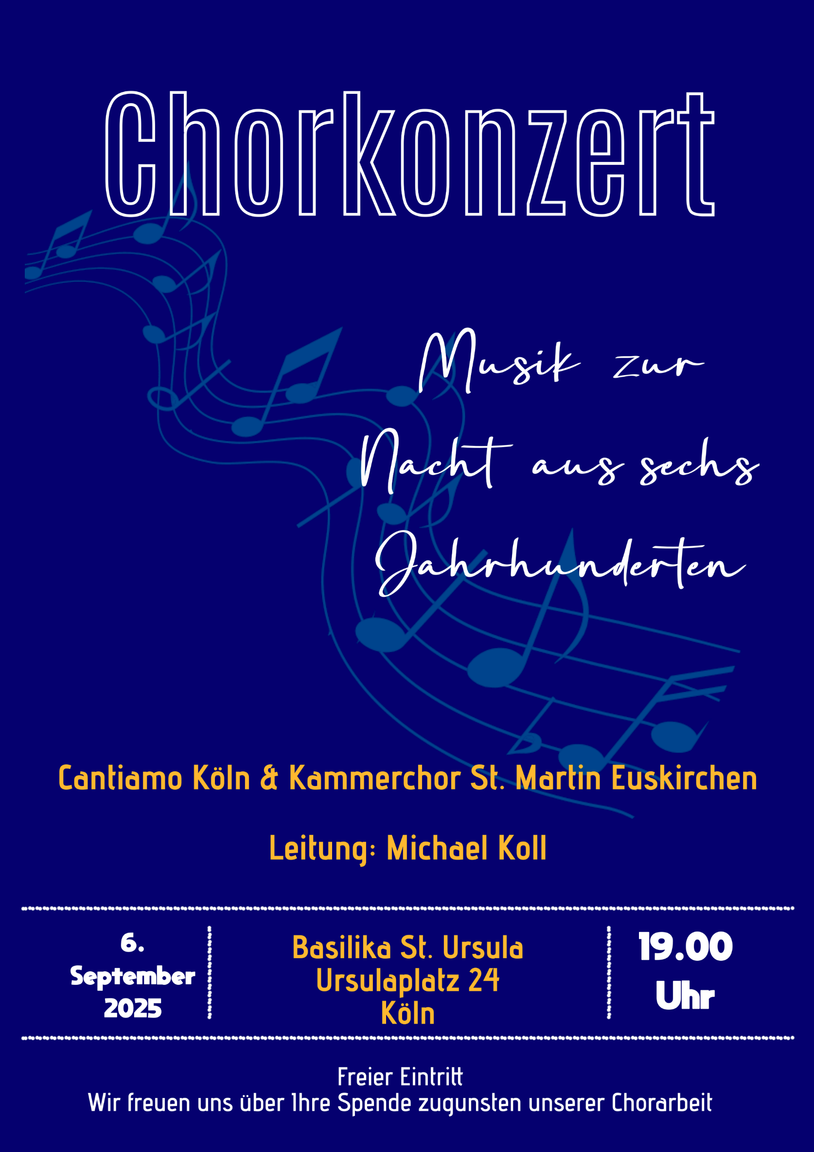 Der Eintritt ist frei, gerne können Sie unsere Chorarbeit mit einer Spende unterstützen.